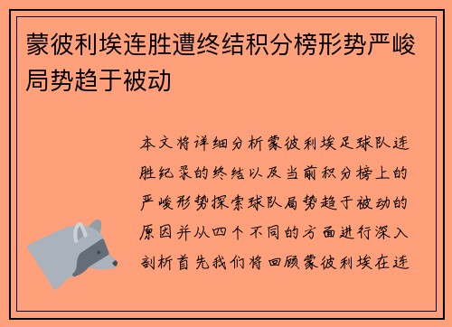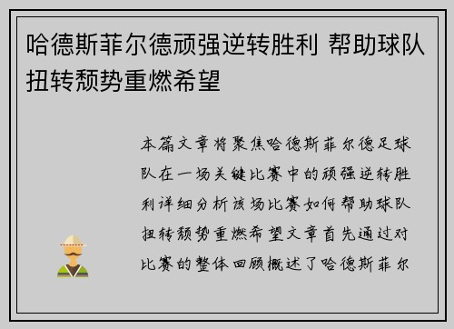 波鸿队顽强拼搏至最后时刻,艰难逼平对手,展现了不屈的精神。这支球队虽然在比赛过程中处于不利局面,但他们始终未曾放弃,最终凭借顽强的斗志,迎来了令人振奋的平局。通过四个方面的阐述,我们将深入探讨波鸿队在比赛中的顽强拼搏、战术执行、团队合作和球员个人表现,如何共同塑造了这场充满韧性和决心的比赛。1、顽强...